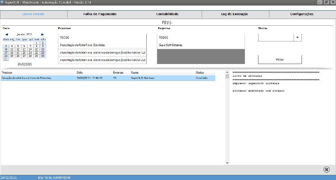 Após a data e horário agendado, caso você clique no menu Log de Execução, o Sistema apresentará os processos realizados e o resultado alcançado