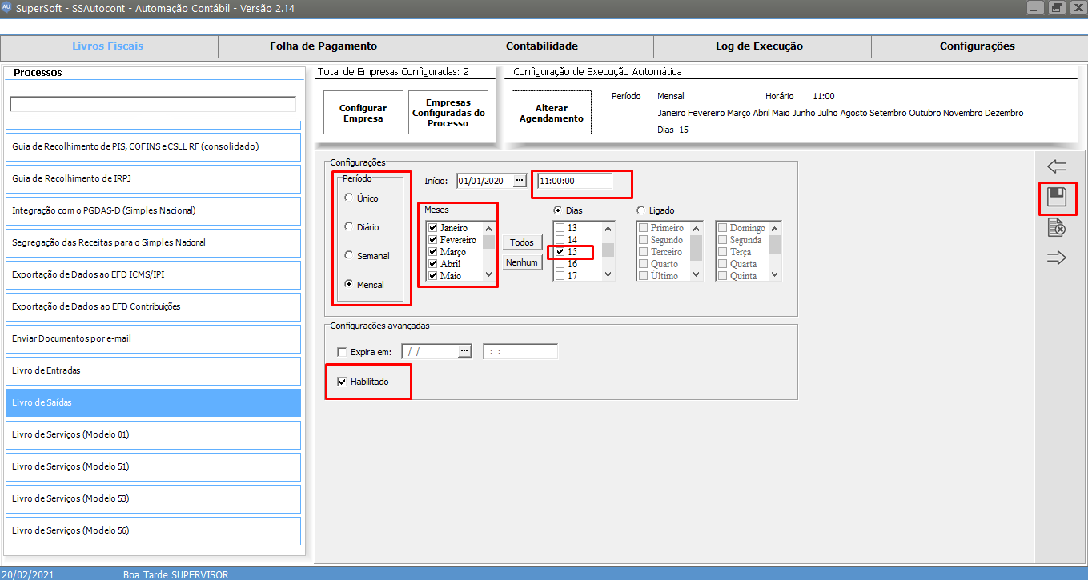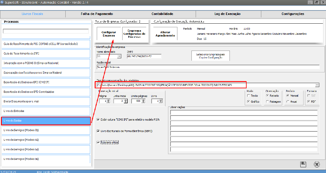 O AutoCont irá gerar na pasta cadastrada na configuração do processo, o Livro de Saídas, das empresas configuradas.