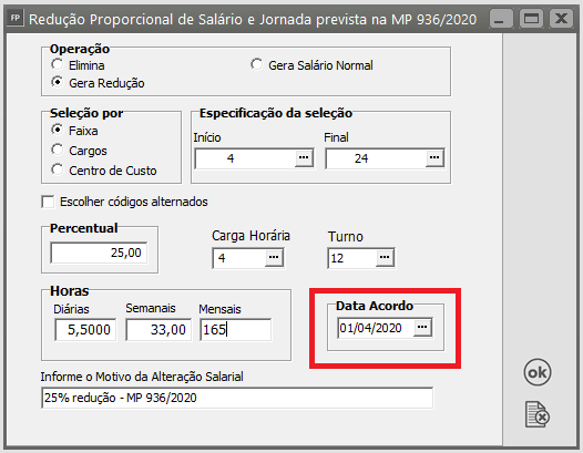 Se o funcionário for horista esta opção ficara desabilitada. Isso porque o valor do salário hora do funcionário não pode ser reduzido, somente a sua carga horaria.